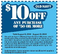 This awesome coupon can save you $10 off any purchase of $50 or more at Old Navy! Use it next time you need some clothes! You have a little over a week to use this. This coupon expires on August 19, 2010.