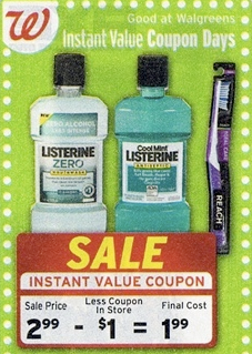 Get a Free Full-Sized Bottle of Listerine Zero Mouthwash at Walgreens! This is valid this week only! In this weeks Walgreens weekly ad, you will find a coupon (pictured to the right) for $1.00 of Listerine, making the price for the Listerine only $1.99. I have located a $2.00 off coupon as well! You need to print out this one.