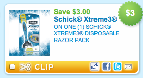 $3 Off One Schick Xtreme3 Razor Pack