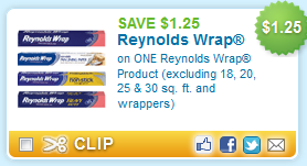 Coupons.com just released a high value coupon valid for $1.25 off One Reynolds Wrap Product! This coupon does exclude 18, 20, 25, and 30 sq. ft. packages and wrappers. Let us know if you spot any sales… this coupons should make for a great deal!