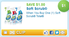 Here’s another new coupon for you! Get $1.00 off Soft Scrub Total Cleaner! Simply use zip code 90210 and click the “Household” category to locate this coupon. Let me know if you spot any sales to pair this coupon up with!