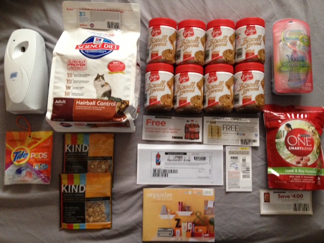 Free Lysol Freshmatic Ultra, Free Bag of Science Diet Cat Food + $3 off Coupon, Free Case of Biscoff Spread (Awesome Freebie!), Free Gillette Venus Embrace Razor, Free Purina ONE Dog Food + $4 off Coupon, Another Free Suave Product Coupon, Free Head & Shoulders Product Coupon, Free Pepsi Next 2-Liter Product Coupon, 2 Free Kind Oat Clusters Samples, Free Tide Pods Sample, And Various Magazines