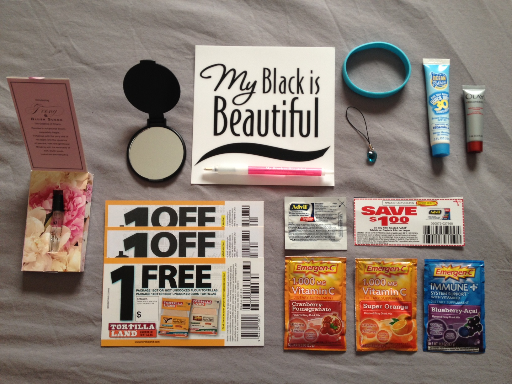 Free MBIB Kit from P&G (Includes Compact Mirror, Bracelet, Pen, Decal, and more), Free Ocean Potion Sample, Free Olay Regenerist Sample, Free Advil Sample + Coupon, Free Tortilla Land Product Coupon, Free Vial Sample of Peony & Blush Suede Fragrance, And Various Magazines