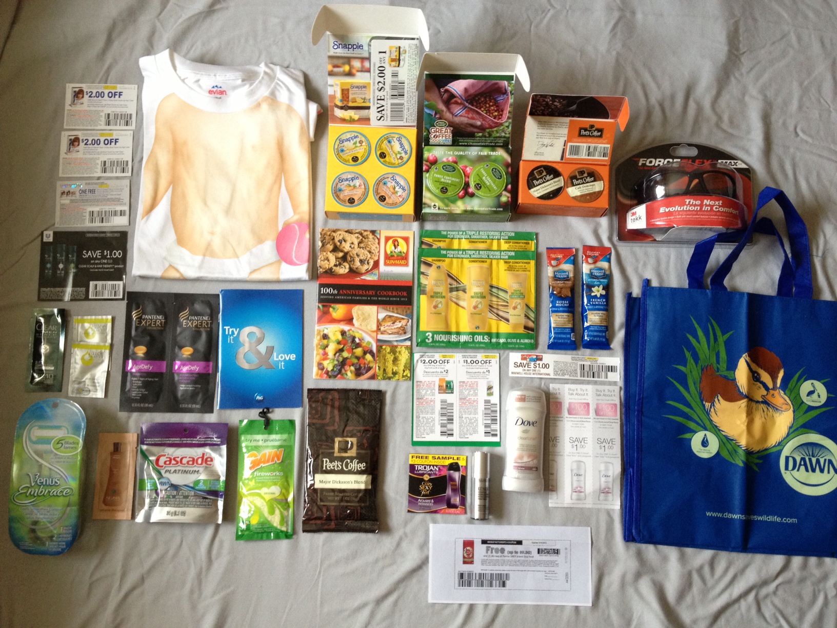 Free Dawn Tote Bag, Free 3M Force Flex Glasses, Free Maxwell House Latte Samples + Coupon, Free Peet’s Coffee K-Cups, Free Green Mountain Coffee K-Cups, Free Snapple K-Cups, Free Full-Size Dove Deodorant + Coupons, Free Trojan Lubricant Sample, Free Paula’s Choice Serum Sample, Free Bounty and IAMS Coupons, Free Peet’s Coffee Major Dickason’s Blend, Free P&G Sampler Box (Gain Sample, Pantene Hair Care Samples, Cascade Samples, and Coupons), Free Sample of Neuma Shampoo, Free Juice Beauty Samples, Free Clairol Root Touch-Up Product Coupon + $2 off Coupons, Free T-Shirt from Evian IWG, And Various Magazines