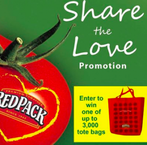 “Like” Redpack Tomatoes on Facebook to enter to win a FREE Redpack Tote Bag! They’ll be giving away up to 3,000 tote bags, depending on how many likes they get. Just complete the short form by December 23rd to get your one-time entry in. Good Luck!