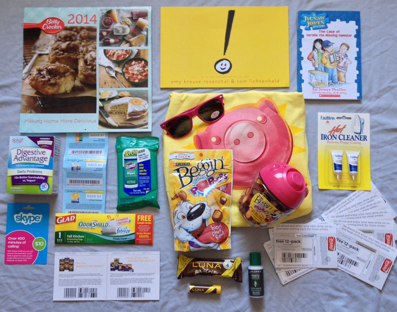 Free 2014 Betty Crocker Calendar, 2 Free Scholastic Books, Free Beggin’ Treats Prize Pack (Treats, T-Shirt, Sunglasses), Free Sample of Faultless Hot Iron Cleaner, 10 Free Coca-Cola 12-Pack Product Coupons, Free Aubrey Shave Cream Sample, Free Luna Bar + Lip Balm, Free Sample of Glad Trash Bags, Free Clorox Wipes Sample + Coupons, Free Oregon Cafe Product Coupon, Free $10 Skype Card, Free Box of Schiff Digestive Advantage, And Various Magazines
