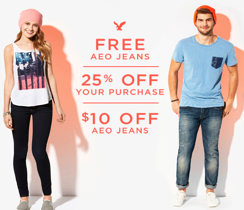 Now through this Sunday (2/23), visit the American Eagle website and click the banner at the top to score a nice discount! Just “scratch” to unveil your prize. You can win a $10 off jeans discount, a 25% off total purchase discount, or even FREE Jeans! Most will win a $10 off jeans discount, but I hope so see some lucky readers win a free pair. (Thanks, Deb!)