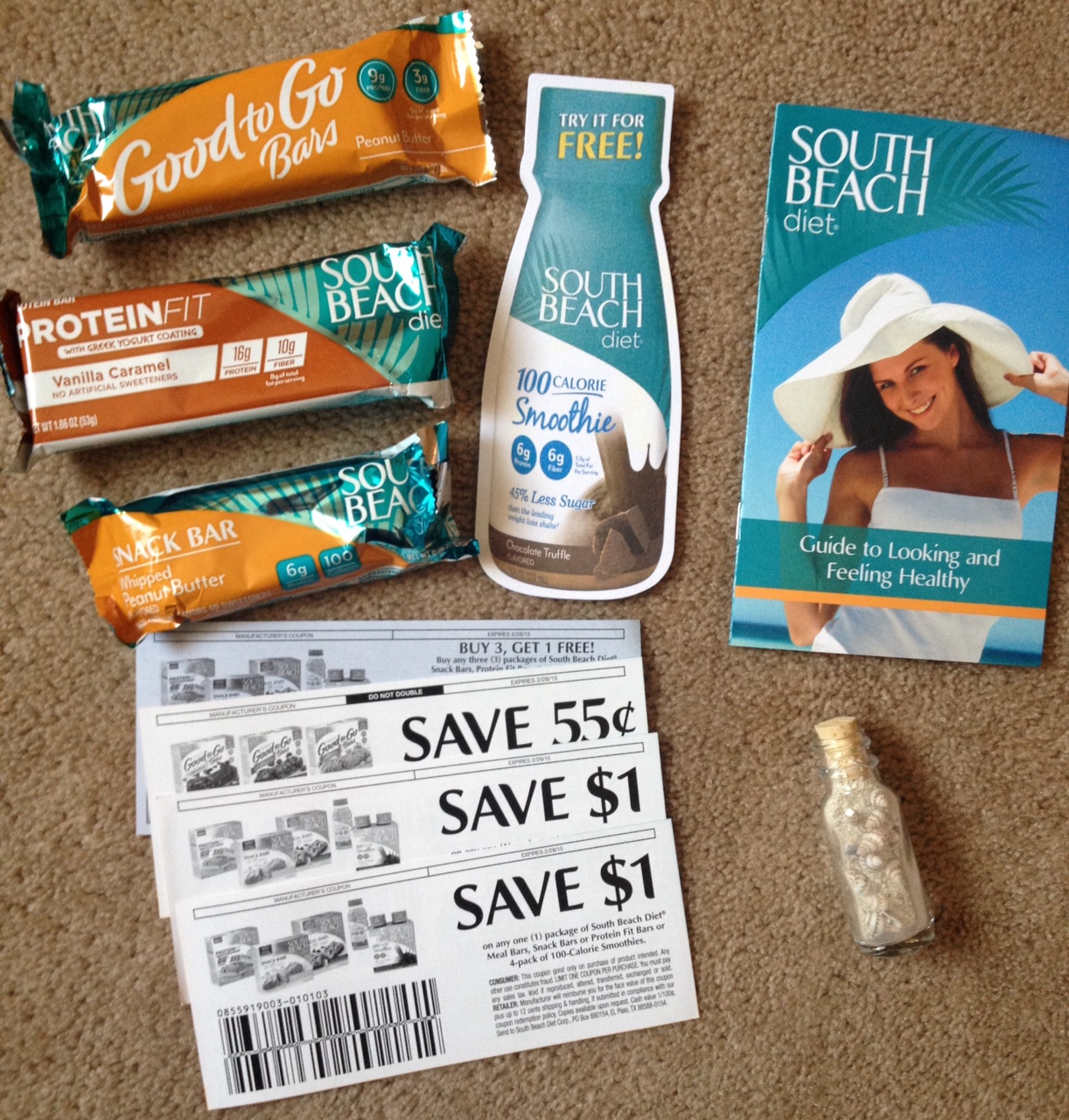 Remember back in January when I posted about the FREE South Beach Diet Starter Kit? I know that several of you have been patiently waiting for it to arrive, so I figured I would put a post together letting you know that they have been shipped out! My free kit just arrived and wow, this is a great freebie. Included in the kit is 3 free South Beach Diet Bars, a free sand/shell decorative piece, a free South Beach Diet Smoothie 4-Pack Coupon ($3.99 value), a booklet, and various other coupons.