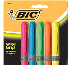Sweet deal! Staples.com is offering a great price on BIC Highlighters. You can snag this 5-Count Pack of BIC Highlighters Assorted Colors for just $1 and this 5-Count Pack of BIC Brite Liner Grip Highlighters for just $1. Make sure to select in-store pickup to avoid shipping costs! Or if you’re a Staples Rewards member, you can get it shipped free to you. (Thanks, The Binder Ladies!)