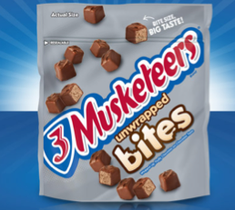 Kroger (and affiliated stores) shoppers, right now you can score a FREE 3 Musketeers Bites Stand Up Bag Product at your local Kroger or affiliated store! Just load the eCoupon onto your Kroger Card, and the next time you go to Kroger, you’ll be able to snag this freebie! Coupon is available to load today only, and is valid through October 18th.