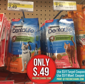 We have two new $1/1 Purina DentaLife Dog & Cat Treat coupons available to print! After stack, you can score the cat treats for just $.49 each at Target.