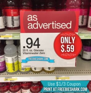 For a limited time, Target has Vitaminwater 20oz bottles on price-cut for $.94 each. You can still print out this $1/3 Vitaminwater coupon under zip code 10001 to help you snag them for just $.59 per bottle! I just picked mine up. This is a great price! 😀