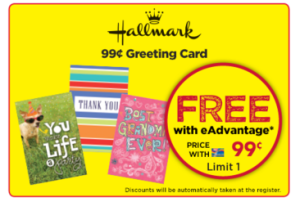 Do you shop at Giant Eagle? If so, go over here to load a coupon on your account valid for FREE $.99 Hallmark Greeting Card! This coupon is valid through April 13th. Sounds good!