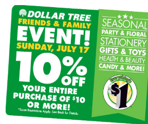 Dollar Tree: 10% off Entire Purchase of $10 or More (7/17 Only)