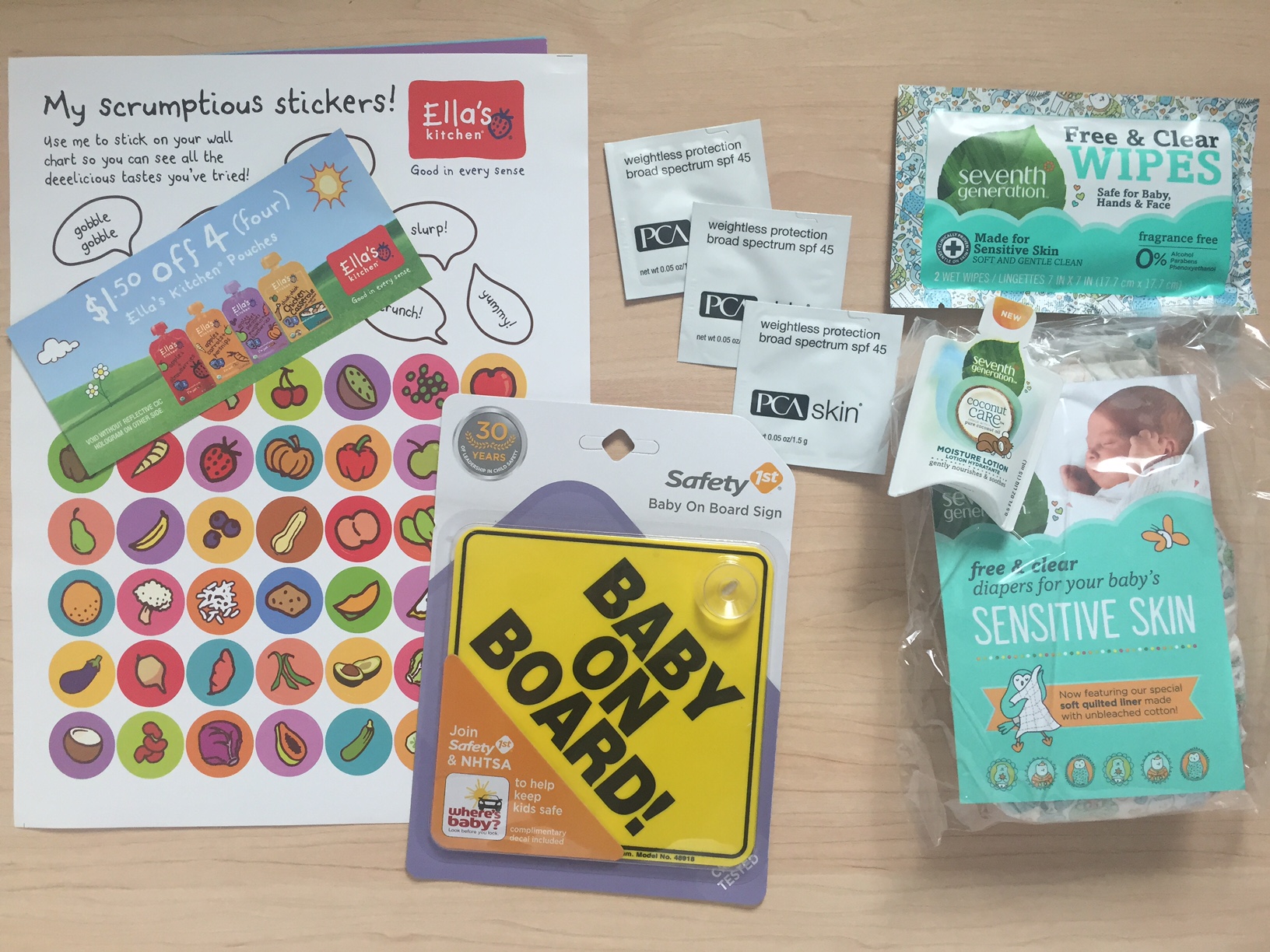 Free Baby on Board Sign, Free Samples of Seventh Generation Baby Products, Free Samples of PCA Skin Sunblock, and Free Various Magazines.