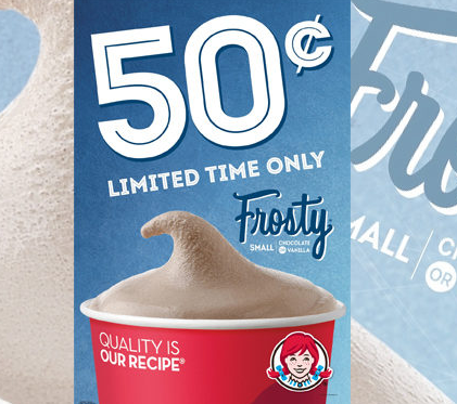 Craving something sweet? 🙂 Now for a limited time only, you can head to a participating Wendy’s restaurant to get a Small Frosty for ONLY $.50! No coupon is required and you can pick between vanilla or chocolate. It’s always a good idea to call ahead to make sure your location is participating.