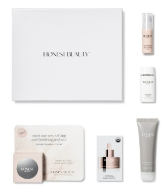 This beauty box comes with five items: Refreshingly Clean Gel Cleanser, Younger Face Deep Hydration Cream, Everything Organic Facial Oil, Everything Primer Luminous Base, and Invisible Blurring Powder. (Thanks, Glori!)