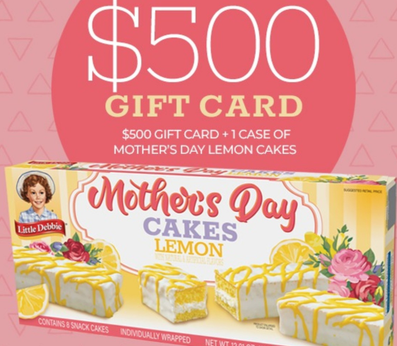 Little Debbie wants to help you celebrate Mother’s Day by launching this new Little Debbie Mother’s Day Sweepstakes! A total of 17 prize packs are up for grabs — some of which include $250-$500 gift cards. Enter once per day through April 30th. Good luck! (Thanks, Holly, Dana, & Mindy!)