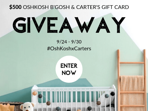 Perfect for your little ones! Enter the Carter’s & OshKosh B’gosh $50 Gift Card Sweepstakes for your shot at winning 1 of 10 FREE $50 Gift Cards! Simply enter your e-mail address by September 30th to get your one-time entry in. Winners will be notified via e-mail on October 1st. Good luck!