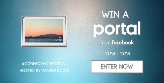 An easy entry sweepstakes! Enter the Savings.com Connect with Portal Sweepstakes for your shot at winning 1 of 3 FREE 10″ Portals from Facebook ($179 value)! Simply enter your e-mail address by October 18th to get your one-time entry in. Winners will be notified via e-mail on October 21st. Good luck!