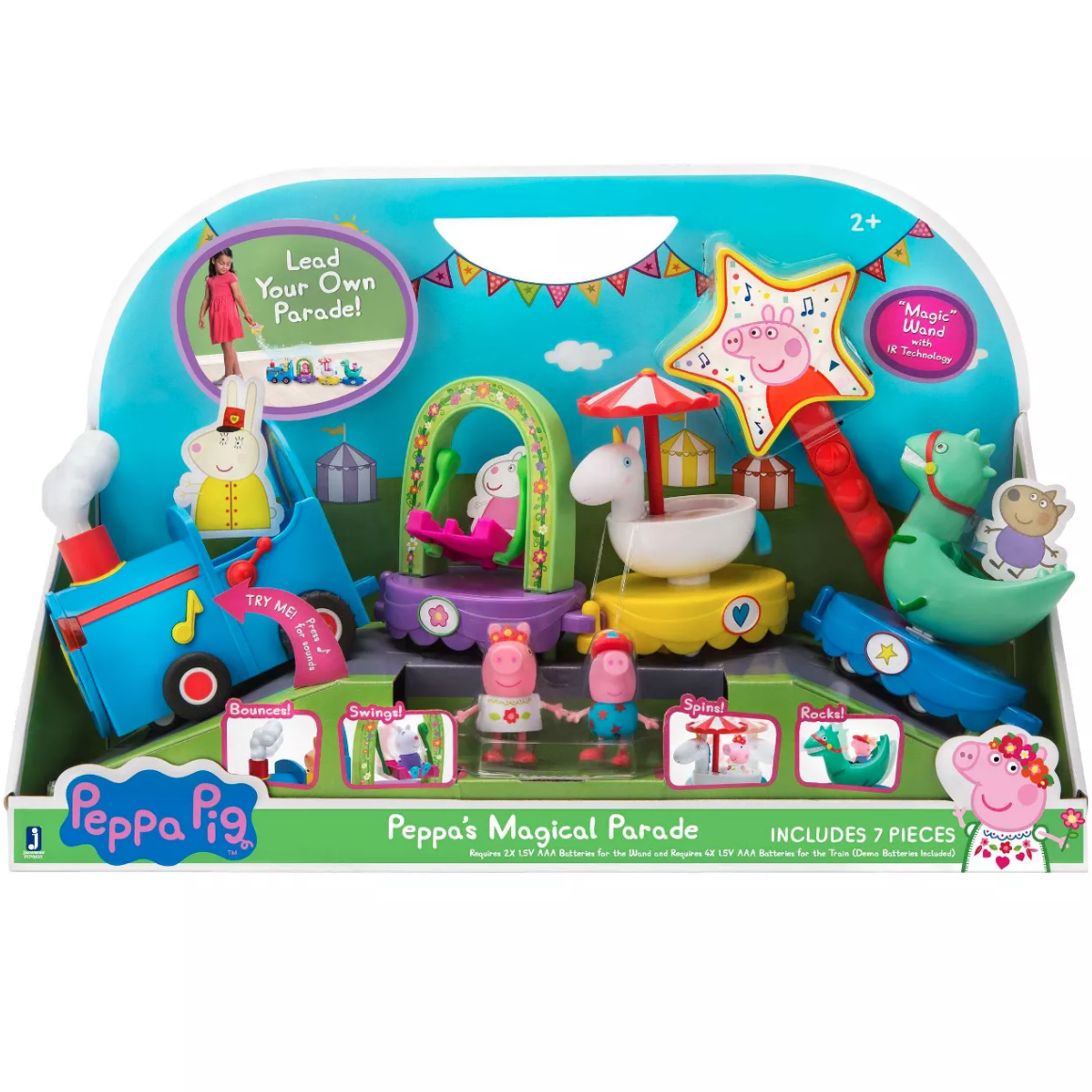 Amazon is currently offering this Peppa Pig Peppa’s Magical Parade for just $19.99 – down from the regular price of $39.99! This is the lowest price ever offered on Amazon. It features a magical wand with infrared technology to make the parade follow you, and has three interchangeable floats.