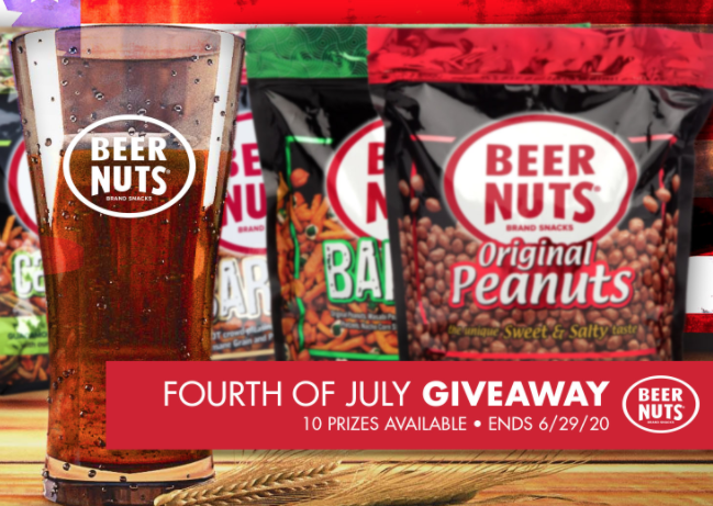 Want to win some snacks? Beer Nuts is giving away ten yummy prize packs in this new Beer Nuts ‘Fourth of July’ Sweepstakes! Each prize pack includes various Beer Nuts products and merchandise. Get your one-time entry in by June 29th. Good luck!