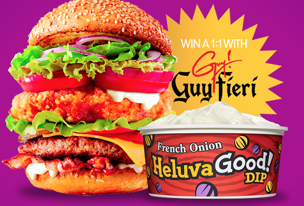 Now through September 9th, you can enter this Heluva Good Fully Loaded Sweepstakes for your shot at winning a one-on-one virtual session with Guy Fieri! The winner will also get a t-shirt and book. Note that sharing a recipe is not required to enter. This is a one-time entry sweepstakes. Good luck! (Thanks to all who sent this in!)