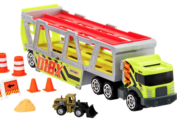 Here’s a fun gift idea for your little one! Amazon has this Matchbox Construction Hauler for the lowest price of $10.49! This large-scale construction hauler has super features and lots of pieces kids will love. There are two ramps on both levels at the back that can let vehicles roll out with a kid-activated switch.