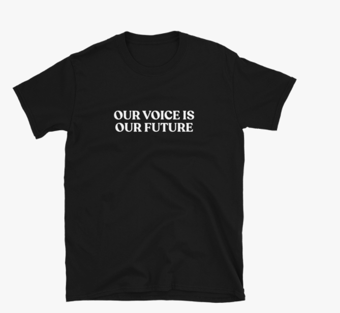Vocal is offering you a FREE ‘Our Voice is Our Future’ T-Shirt when you enter promo code OURVOICE at check out! Simply select the size of your choice, enter your information and the promo code, and check out. Free shipping is also included. Make sure the price is $0.00. No payment information is required. Allow up to 8 weeks for shipping! (Thanks, Phoebe!)