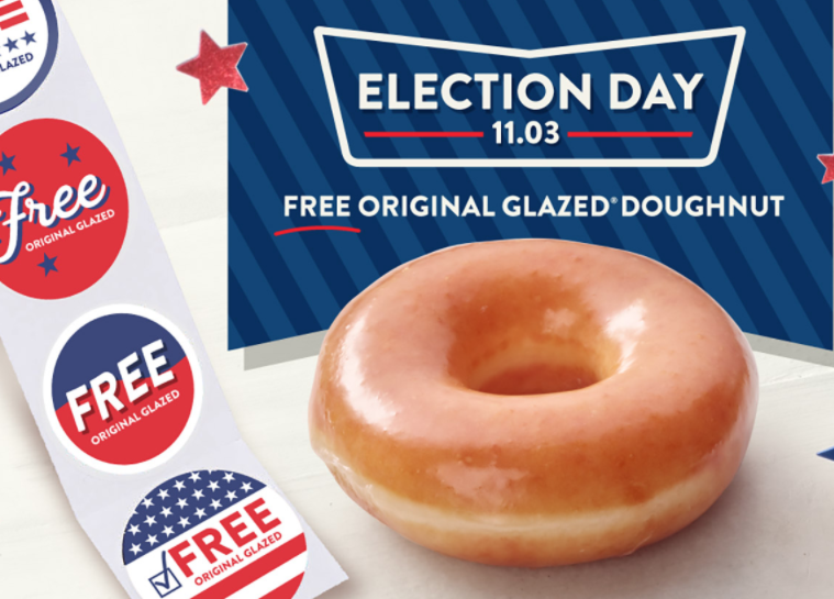Just a reminder that you can stop your local Krispy Kreme location today to score a FREE Original Glazed Doughnut in honor of Election Day! They’ll also be handing out “I Voted” stickers as well. Limit one person person. No purchase is necessary. Spread the word!