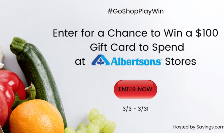 Do you shop at Albertsons? Enter this Albertsons $100 Gift Card Sweepstakes for your shot at winning 1 of 60 FREE $100 Albertsons Gift Cards! Simply enter your e-mail address by March 31st to get your one-time entry in. You may uncheck the e-mail subscription box. Winners will be notified via e-mail on April 1st. Good luck!