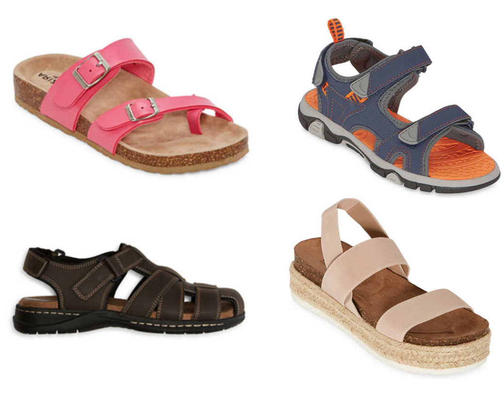 Wow! Right now, JCP is offering a GREAT deal on sandals for the entire family! Buy one, get TWO for free! The lowest priced pairs will be free. Mix and match from TONS of different styles for women, men and kids. Shipping is free at $75, but you can order online and pickup at most stores for free.