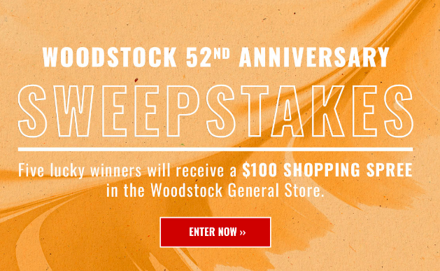 Five will win a FREE $100 merchandise credit in honor of Woodstock’s 52nd anniversary! Just enter this Woodstock 52nd Anniversary Sweepstakes once by August 31st for your shot to win. You may uncheck the e-mail subscription box. This is a one-time entry sweepstakes, just be sure to enter by August 31st. Good luck!