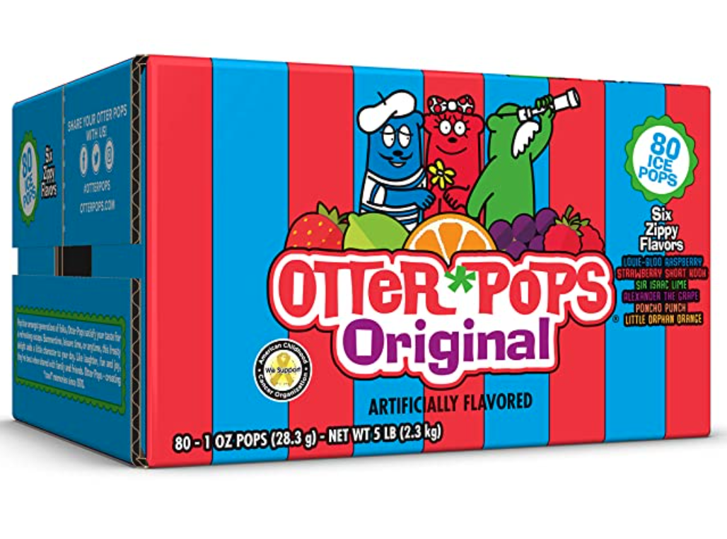 Grab this Otter Pops Freezer Ice Bars (80 Count) for only $6.94 with one-time purchase OR Subscribe & Save – the lowest price ever! This is regularly almost $11. You’ll get the original flavors in this pack: Louie-Bloo Raspberry, Strawberry Short Kook, Sir Isaac Lime, Alexander the Grape, Poncho Punch, and Little Orphan Orange. Note: Be sure to opt out of the Subscribe & Save after your order ships if you don’t want future deliveries.