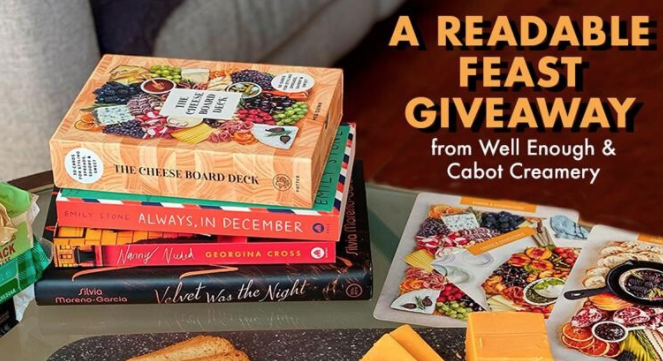 One lucky winner will score a these books AND Cabot Cheese prize pack from this Penguin Random House “A Readable Feast” Sweepstakes! Get your one-time entry in by November 22nd. Note that this will subscribe you to their newsletter, but you may unsubscribe at any moment. Good luck!