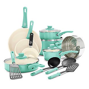 Four fun, pastel colors of this GreenLife Ceramic Cookware Set are only $69.99 right now on Amazon! They are regularly $99.99. Each includes a 4” mini frying pan, 7” and 9.5” frying pans, 1 and 2qt saucepans with lids, a 5qt stock pot with lid, a 2.5qt saute pan with lid, a 7” stainless steel steamer, and four kitchen utensils.