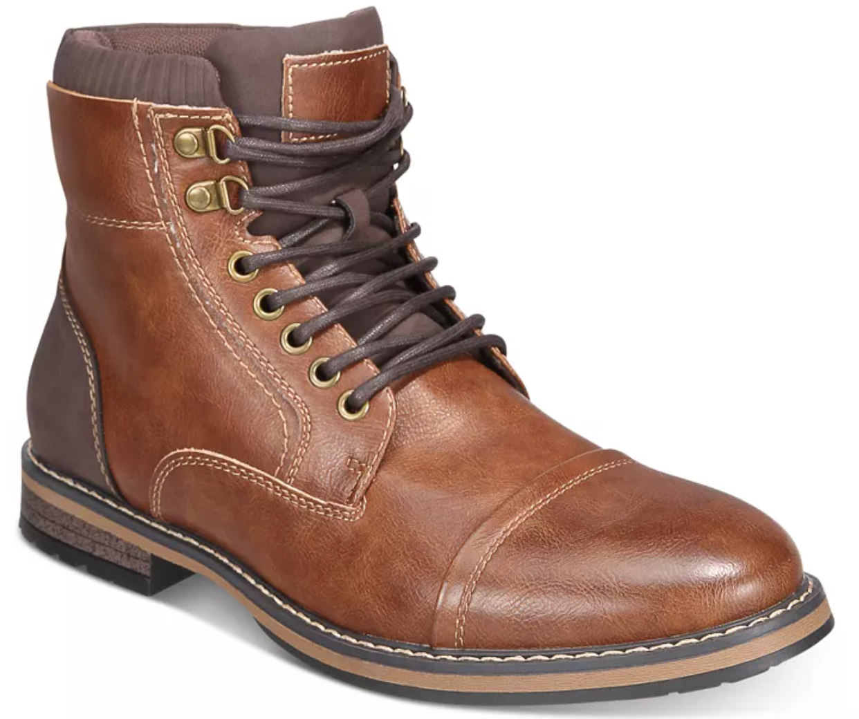 Get these Men’s Club Room Faux-Leather Cap-Toe Dress Boots for just $19.99 in two color options! These are regularly $69.99 – so you’re saving 70%!! Get free shipping at $25.