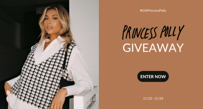 Want to win some new clothes?! Enter the Princess Polly $100 Gift Card Sweepstakes for your shot at winning 1 of 5 FREE $100 Princess Polly Gift Cards! Simply enter your e-mail address by 11:59PM tonight to get your one-time entry in. Winners will be notified via e-mail on November 25th. Good luck!