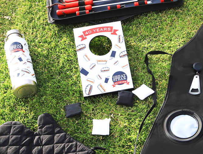 A total of 22 lucky winners will score a BBQ swag pack valued at $100 from this new Great Steak 40th Anniversary Swag Sweepstakes! Each prize pack includes a mini bean bag toss game, BBQ set, apron, and more. Get your one-time entry in by December 15th. Winners will be notified via e-mail. Good luck!