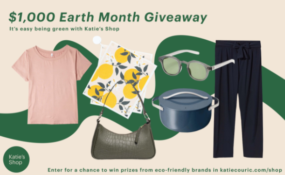Celebrate Earth month by winning a $1,000 prize pack from this new Katie Couric “$1,000 Earth Month” Sweepstakes! The prize pack includes sustainable clothing, leather accessories, sunglasses, cookware, and more. Note that this will subscribe you to their newsletter, but you may unsubscribe at any moment. Get your one-time entry in by April 30th. Good luck!