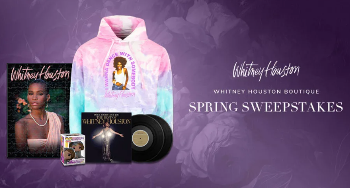 Whitney Houston fans will want to enter this new Whitney Houston “Boutique Spring” Sweepstakes! The prize pack includes a hoodie and other merch + swag. You may uncheck the e-mail subscription box. Feel free to share your referral links in the comments section. Enter once by April 30th. Good luck!