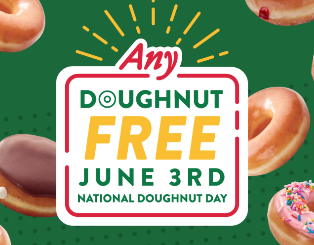 In honor of National Doughnut Day on June 3rd, Krispy Kreme will be offering fans of their choice of any doughnut at no charge! Just stop in to any participating Krispy Kreme location on June 3rd to claim your doughnut of any variety. No coupon or purchase necessary! For more information, click here.