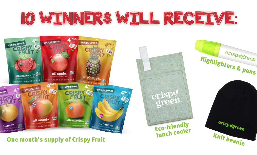 A new school year is here! Enter this new Crispy Green “Back to School Prize Pack” Sweepstakes and you could win 1 of 10 awesome prize packs! Get your one-time entry in by August 31st. Good luck! (Thanks, Crystal!)