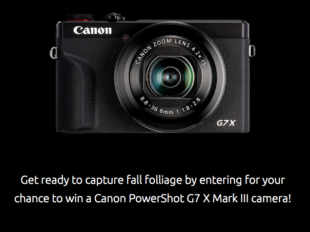 This would be a fun win! Enter this new Canon “Fall in Love with Photography” Sweepstakes for your shot at a camera prize pack ($750 value) to help you enjoy you photograph your fall adventures! Get your one-time entry in by October 28th. Best of luck!
