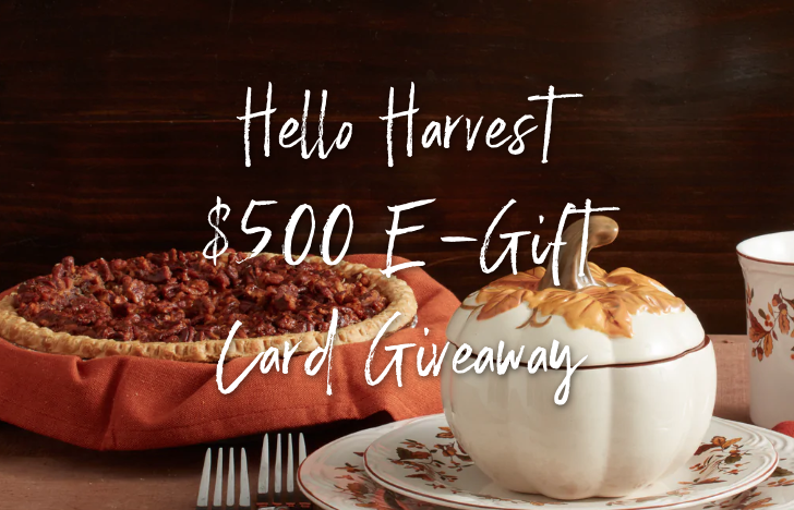 Celebrating the start of Fall with this Pfaltzgraff Hello Harvest Sweepstakes! The lucky winner will get a $500 e-Gift Card so you can score all the top-selling essentials to make your fall tablescape the center of attention. Note that this will subscribe you to their newsletter, but you may unsubscribe at any moment. Enter once by October 24th. Good luck!
