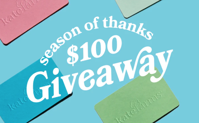Enter this Kate Farms Season of Thanks Sweepstakes and you could win 2 $100 gift cards (3 winners)! Note that this will subscribe you to their newsletter, but you may unsubscribe at any moment. Enter once by November 17th. Good luck!