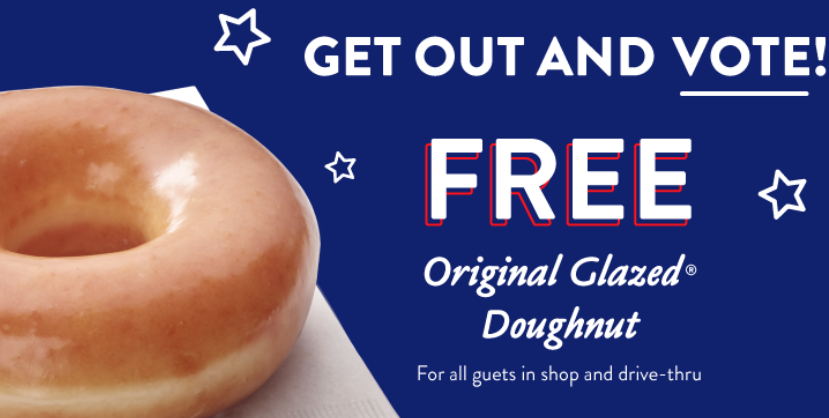 Just a reminder that you can stop your local Krispy Kreme location today to score a FREE Original Glazed Doughnut in honor of Election Day! Limit one person person. No purchase is necessary. Spread the word!