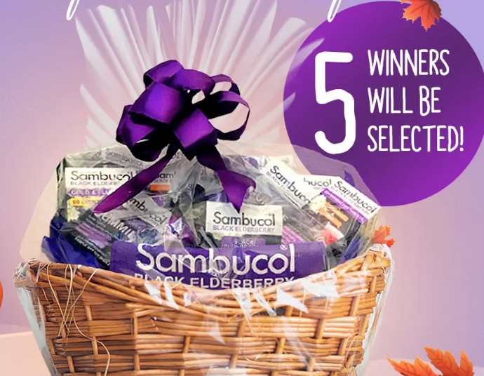 Enter this Sambucol Gift Basket Sweepstakes your chance to win one of five gift baskets ($150 value)! Simply fill out the short form once by November 30th for your shot to win. Note that this will subscribe you to their newsletter, but you may unsubscribe at any moment. Good luck!