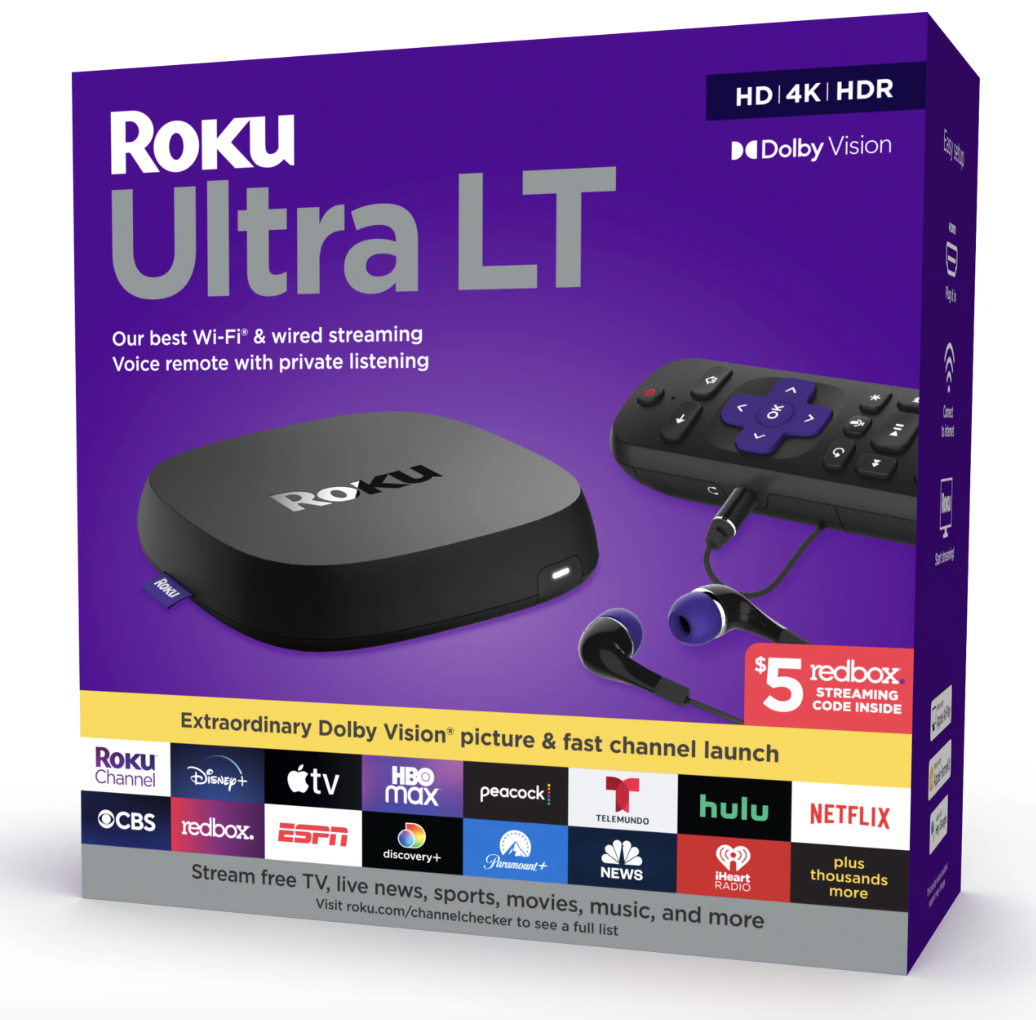 Walmart has this highly rated Roku Ultra LT Streaming Device on sale for just $30! Power up your TV, adjust the volume, and control your streaming device with the Roku remote. This will make a great gift!