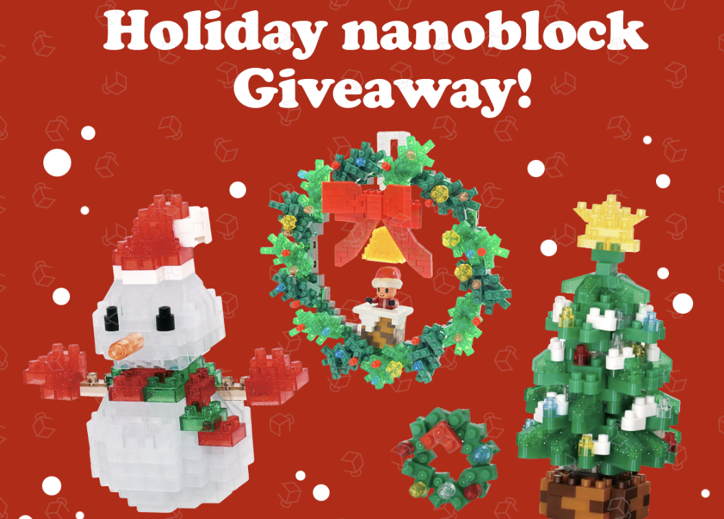 Three will win a holiday prize pack from this new Bandai Holiday Nanoblock Sweepstakes! Note that this will subscribe you to their newsletter, but you may unsubscribe at any moment. Enter daily by December 16th. Best of luck!